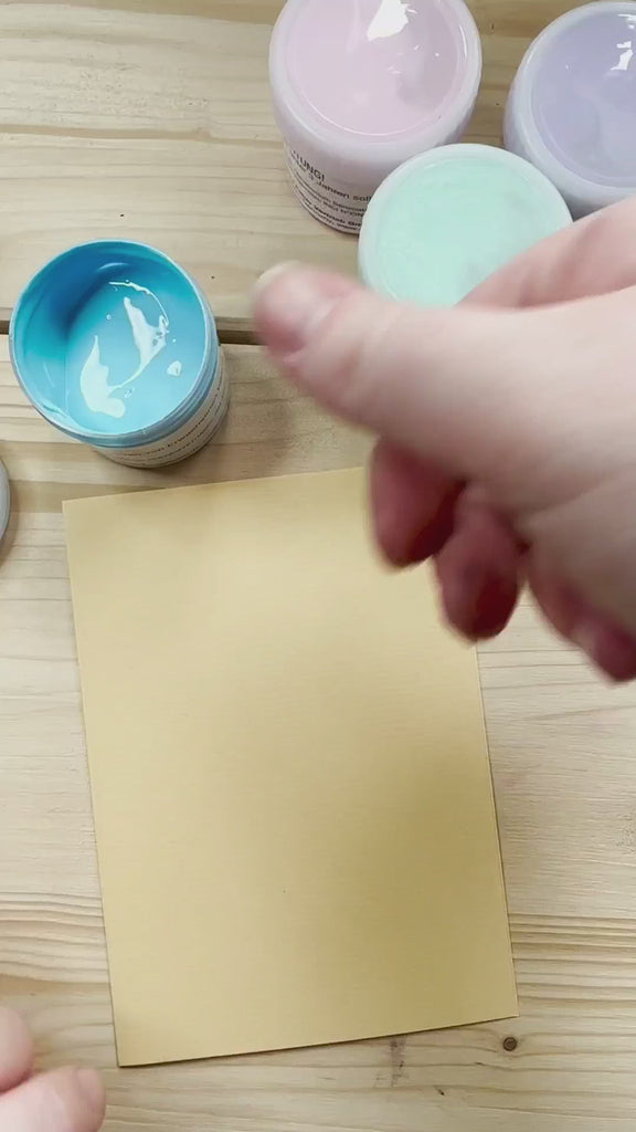 Inhalt: 6 Fingerfarben à 40 ml in Pfirsich, Mint, Pastellrosa, Flieder, Pastellblau, Warmgrau
