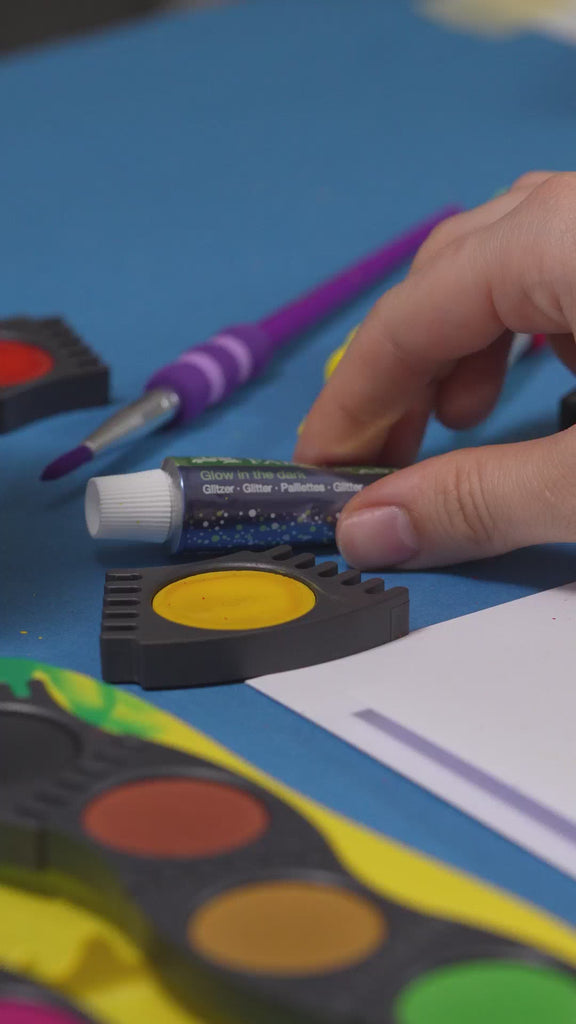 Mit dem Glow in the Dark Glitzer-Gel von Faber-Castell erwachen Kunstwerke auch im Dunkeln zum Leben. Einfach auf trockene Deckfarben auftragen, tagsüber malen – und nachts staunen! Der sanfte Glitzer verleiht den Farben einen leuchtenden Effekt, der im Dunkeln sichtbar wird.